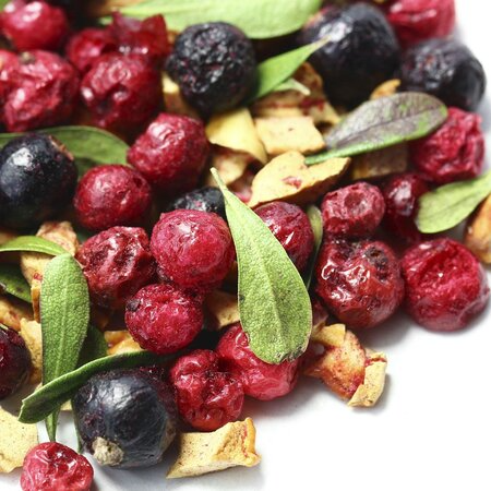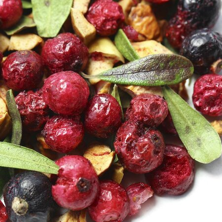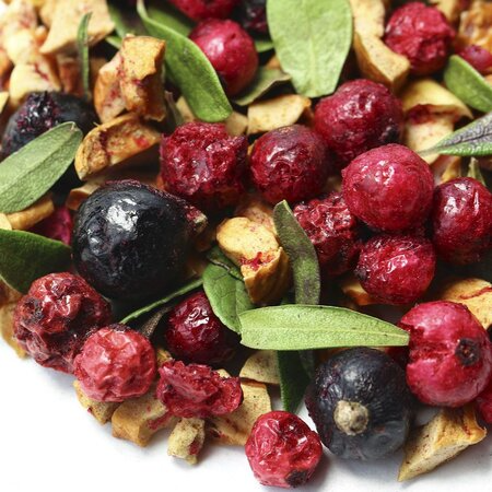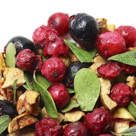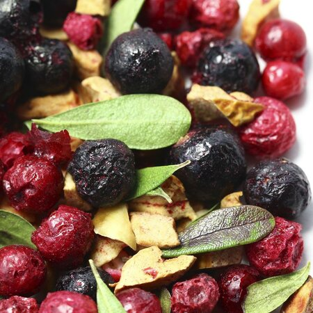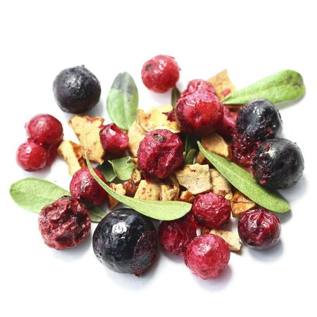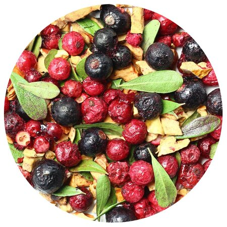 Сочная колоритная смесь составлена из цельных ягод, кусочков яблока и каплевидных листочков. Яркий, по-летнему свежий вкус и несомненная польза напитка заряжает энергией и позитивом!