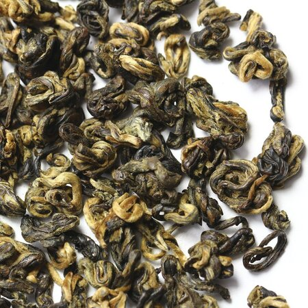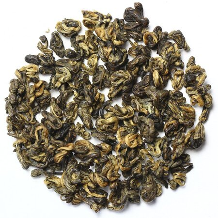 Мягкий и сладкий чай Хун Би Ло обладает непревзойденным ароматом, а также снимает стресс и дарит гармонию, равновесие и чувство расслабления. Этот напиток оригинален во всем как внешне, так и по своим вкусовым качествам. Чаинки имеют оригинальный причудливый вид закрученных спиралек.