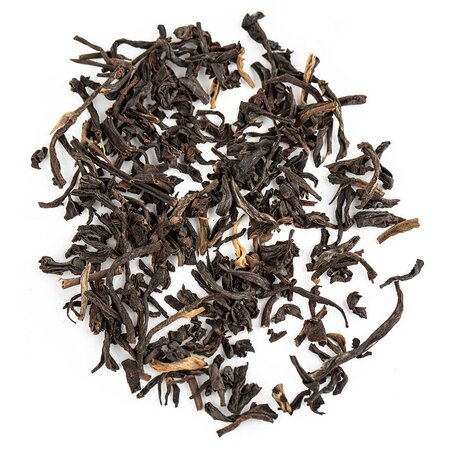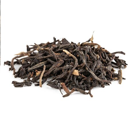 Сухая россыпь составлена из аккуратных туго скрученных чаинок темно орехового цвета. Настой имеет блестящий темно гранатовый цвет. Вкус плотный и сладковатый.