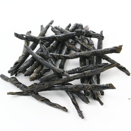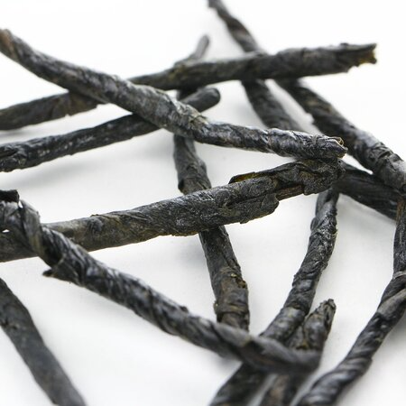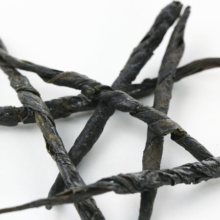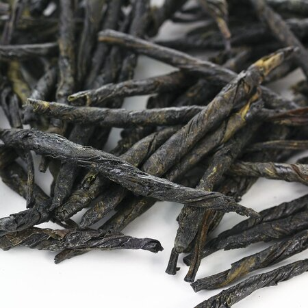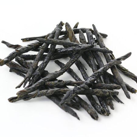 В сухом виде чай представляет собой длинные и тонкие листочки продольной скрутки, похожие на темные смолистые палочки. Готовый напиток имеет яркий, насыщенный терпкий вкус и нежный сладкий аромат с травянистыми нотками. Послевкусие сладкое. Цвет настоя может варьироваться от светло-желтого до изумрудно-зеленого.