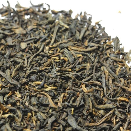 Сухой обработанный сбор представляет собой немного скрученный чайные листочки коричневого цвета, возможны небольшие вкрапления золотистого оттенка.