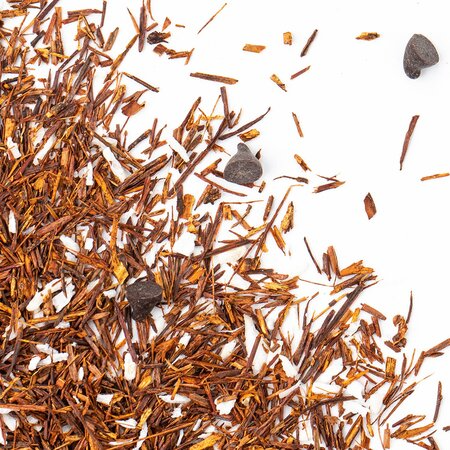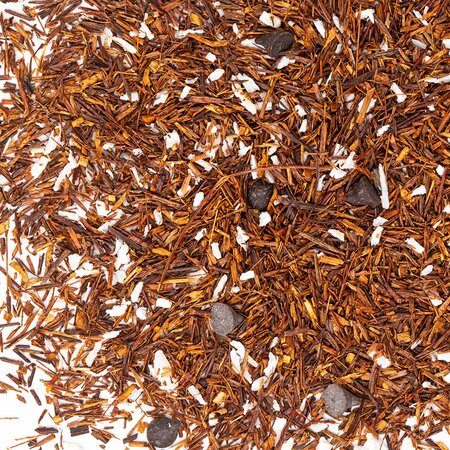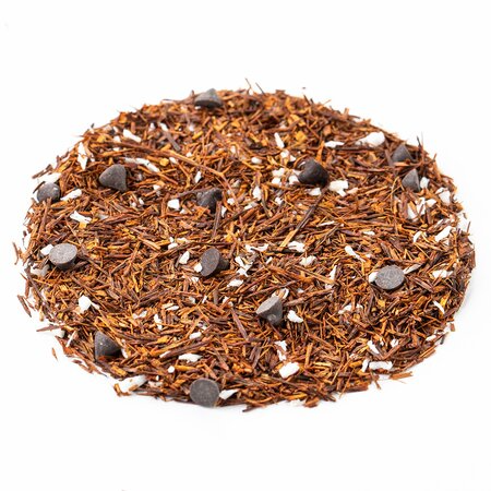 Ройбос, шоколадные капли, кокосовая стружка, аромат шоколада.