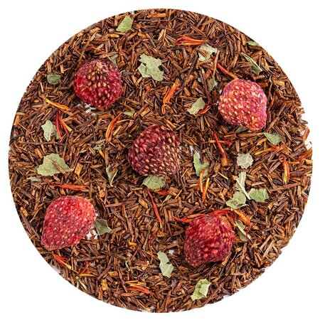 Ройбос, кусочки клубники, лепестки сафлора, листья смородины, аромат садовой земляники.