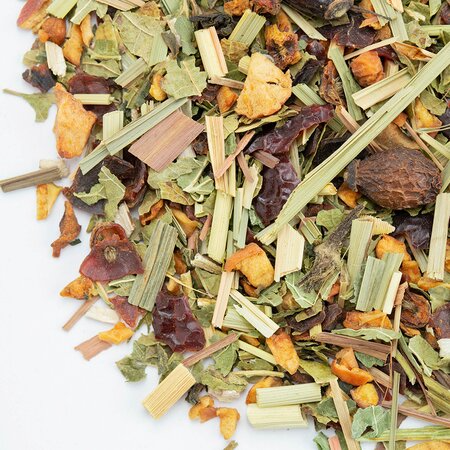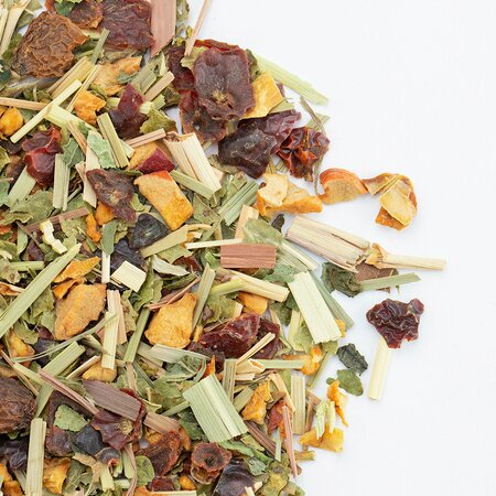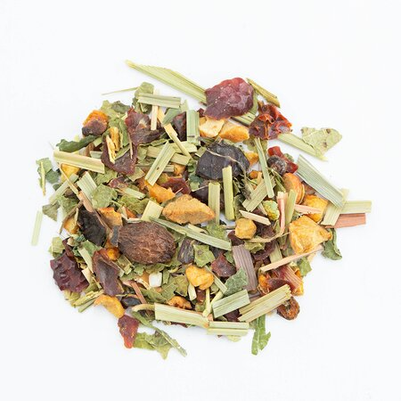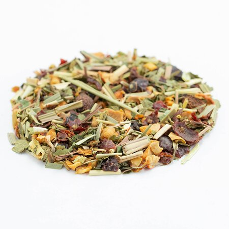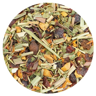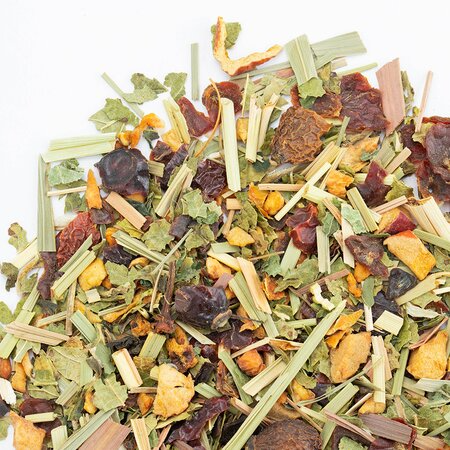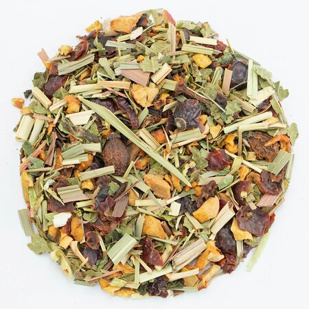 эхинацея, шиповник измельченный, кусочки яблок, лемонграс, листья смородины, мята, крапива.