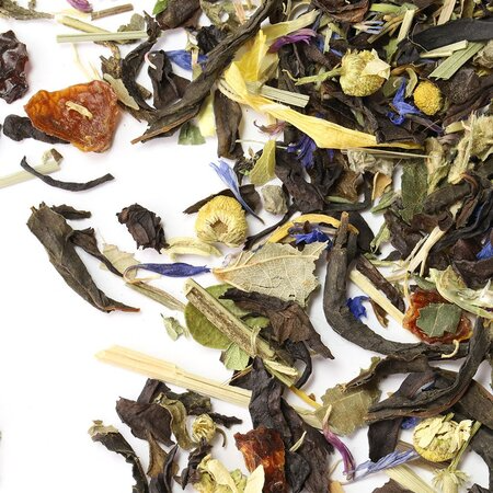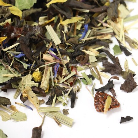 Чай китайский Да Хун Пао ( большой красный халат ), иван чай, шиповник измельченный, мята, чабрец, лемонграсс, цветы ромашки, крапива, листья ежевики, душица, липа, листья ежевики, лепестки василька, лепестки календулы, листья толокнянки.