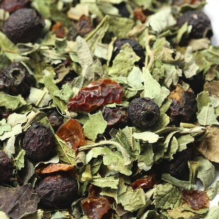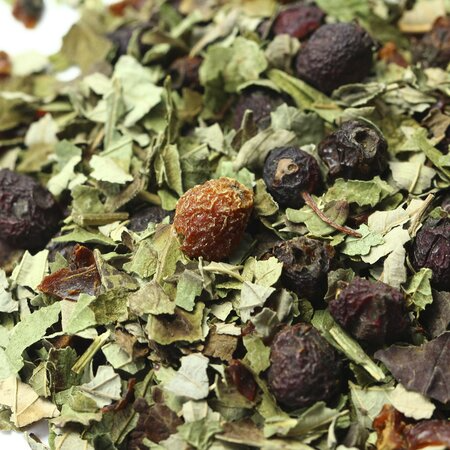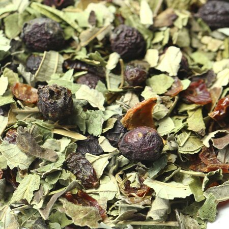 Плоды боярышника, листья ежевики, плоды шиповника измельченные, листья смородины, плоды барбариса.
