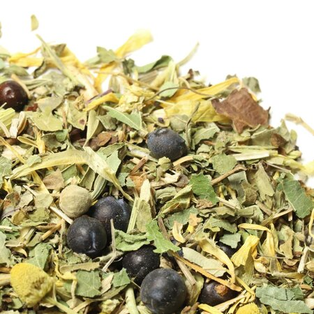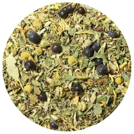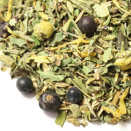 В состав сбора включены такие целебные компоненты: Эхинацея, плоды можжевельника, мелисса, душица, плоды шиповника измельченные, семена фенхеля, зверобой, листья ежевики, мята, ромашка, липа, лепестки календулы. Все эти растительные компоненты произрастают в заповедной зоне луговых степей на вершинах горных плато.